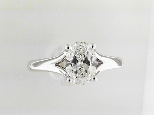 14KW Lab Grown Diamond Engagement Ring with 1.00ct Oval Center Dia TW 1.02