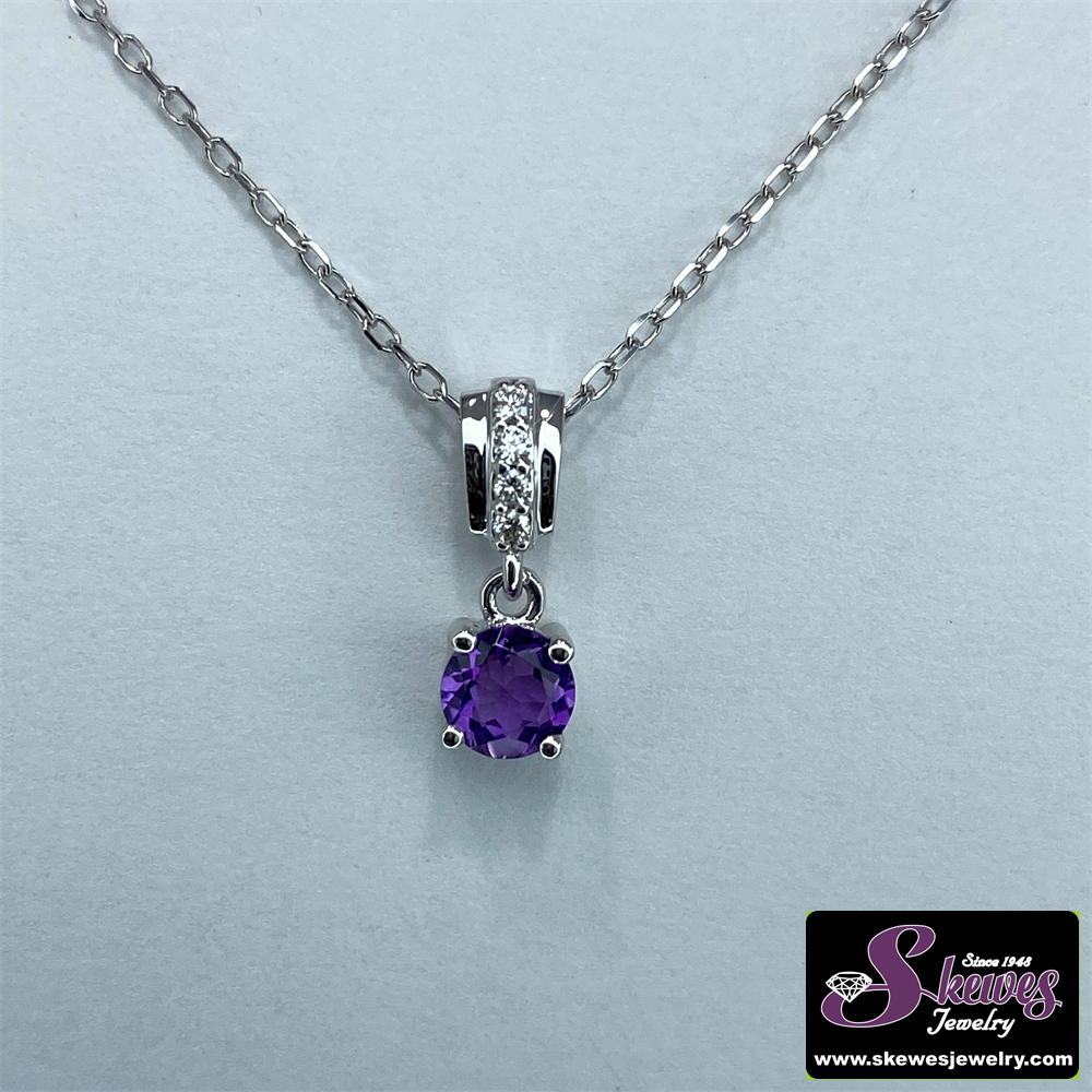 10KW Round Amethyst Pendant Dia Tw .03