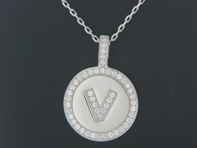 Sterling Silver Micro Pave CZ Circle Pendant- V